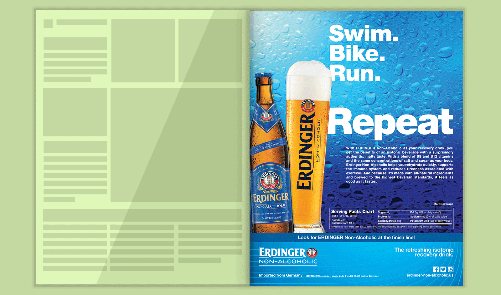 For the launch of ERDINGER's Non-Alcoholic campaign in the USA, we introduced a strategy that the product was the perfect recovery drink for athletes, with the added taste of a well brewed beer.